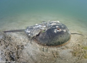 鲎喜欢生活在布满柔软砂土的海床上,它们在那里漫游着,搜寻一些小型无脊椎动物或者有机碎屑,来作为食物。当你看到许多鲎聚集在沙滩上时,就意味着一场盛大的相亲大会要开始了。雄鲎通常比雌鲎小许多,它们会趴在雌鲎的背上组成搭档,形影不离的样子被人们称作“海底鸳鸯”。到了该生宝宝的时候它们就会搭乘高涨的潮水,一起来到为未来宝宝在岸边沙滩准备的安家点,在那里将卵埋进沙子,这样一来,它们作为父母的使命也就完成了。不过为了生育宝宝这个神圣的使命,许多鲎爸爸、鲎妈妈也会因为搁浅而丧命在沙滩上。等待大约20天后,鲎宝宝就会被孵出来,而这时候也刚好赶上又一次海水高涨的时刻,鲎宝宝们就可以乘着这趟顺风车被带回海中,在那里自由地成长。