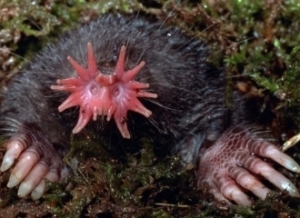 星鼻鼹(Condylura cristata)是世界上最奇特的动物之一。它们最特别的地方就在于鼻子上有一圈星芒结构,由22根肉嘟嘟的触手环绕鼻尖而成,每根触手的长度在1~4毫米不等。星鼻鼹的体长在20厘米左右,和其他鼹鼠一样,它们有着前突的吻、圆筒形的身材、强壮的前肢、宽大的脚掌和爪子。它们的毛发短而密,但比其他鼹鼠要粗糙。背部的毛色呈现为棕黑或黑色,腹部则为浅棕色。到了冬天,它们的尾巴直径会膨胀到平时的3~4倍。
