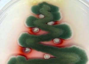 对于圣诞节来说,圣诞树必不可少!菌菌们也不甘示弱,画了一棵圣诞树。不过这棵圣诞树有点小,是在培养皿上完成的……