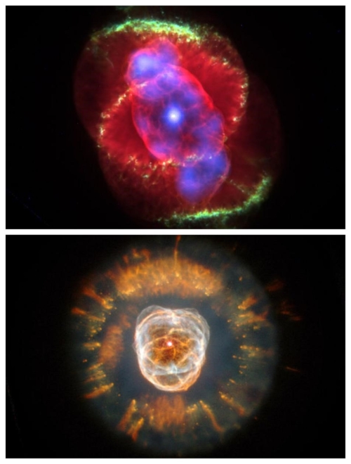 你知道吗?虽然星云很美,但有些却是恒星死亡或快要死亡时形成的景象,称为行星状星云。说到这个名字,可把我们搞糊涂了,虽然名字中有“行星”二字,但行星状星云与行星无关!当科学家第一次观察到行星状星云时,他联想到了天王星,因为它们看起来都是淡绿色的圆形。