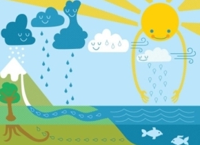 从天而降的雨、雪、冰雹落到地面或江河湖海中,返回到它们出发的起点。水总喜欢往低处流,在陆地或河流中的水如果没被动植物利用,就会流向地势更低的海洋,最终在那里大团聚。但这团聚并不能维持多久,太阳公公的热量会再次把它们带向天空,开始新一轮循环之旅。