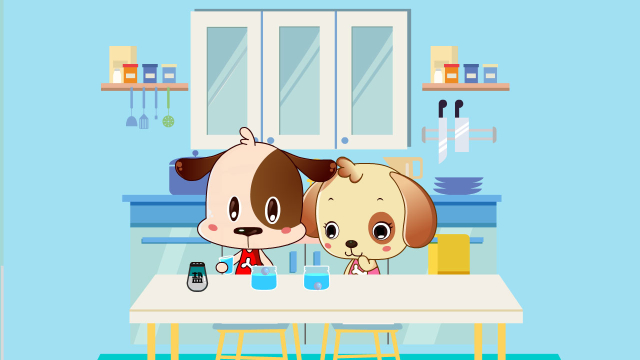 两个小家伙儿来到了厨房,开开找来两个玻璃杯,倒上一样的水。然后又把妈妈做饭用的盐罐子拿了出来。