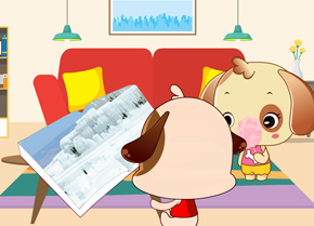 “哼哼哼~”心心坐在沙发上晃着两条小腿,开心地吃着棉花糖。