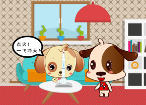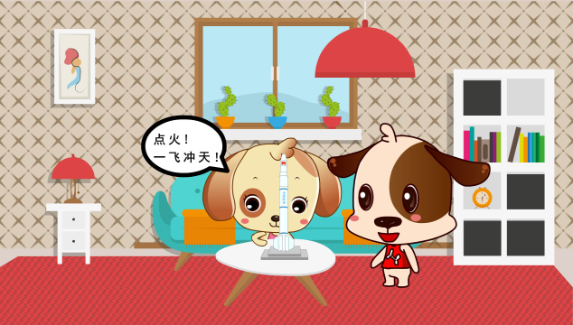 开开和心心的火箭模型终于拼好了,心心将火箭放在发射台上,兴奋地叫道:“点火,一飞冲天!”