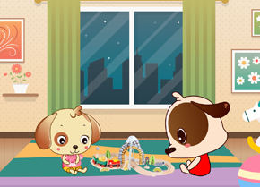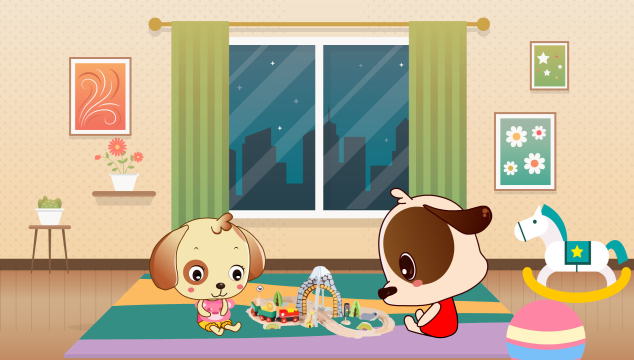 开开帮心心搭建好小火车轨道,心心将小火车放到轨道上,小火车便开动起来。