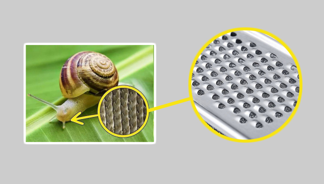 “是的。不过蜗牛的牙齿并不像我们是立着的,‘齿舌’更像我们家里擦丝工具一般。”妈妈解释道,“因此蜗牛虽然拥有这么多牙齿却不能咀嚼食物,它们只能将食物碾碎。不过蜗牛的牙齿可是很锋利的。如果你把蜗牛关在一个硬纸板做的盒子里,用不了多久你就会发现这个盒子上面有一个破洞,而蜗牛已经从这个破洞里钻出,爬走了。”
