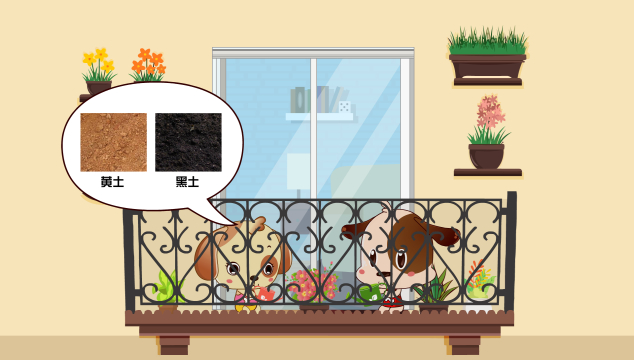 开开和心心一起蹲在阳台,给盆栽植物浇水。“开开,你发现了么,花盆里的土都是黑色的,但是沙土却是黄色的?”