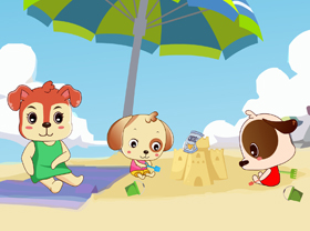 “哎哟,这是谁扔的薯片包装袋啊,都吹到我的城堡上了!”在海边沙滩堆沙堡的心心看着被海风吹过来的薯片包装袋大叫道。