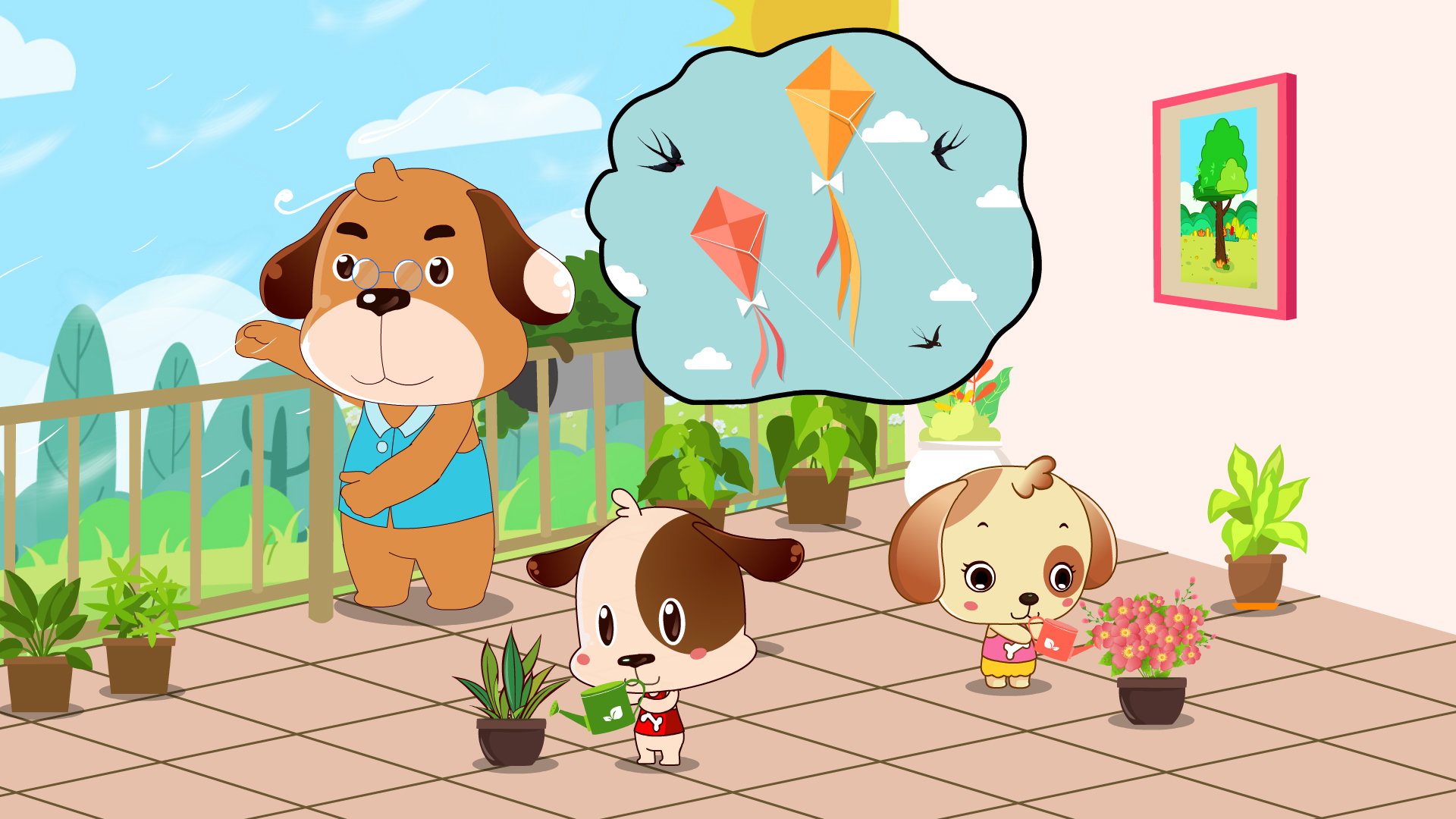 “开开、心心,爸爸带你们出去放风筝如何?”爸爸站在阳台伸手感应着外面的风笑道,“今天这天保准风筝能飞的高高的!”