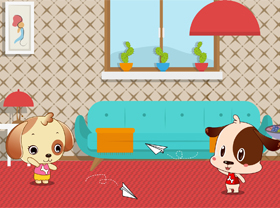 “哈哈哈,你扔的姿势不对,要这样!”开开为心心演示如何扔纸飞机。