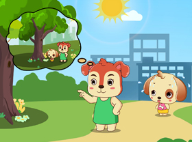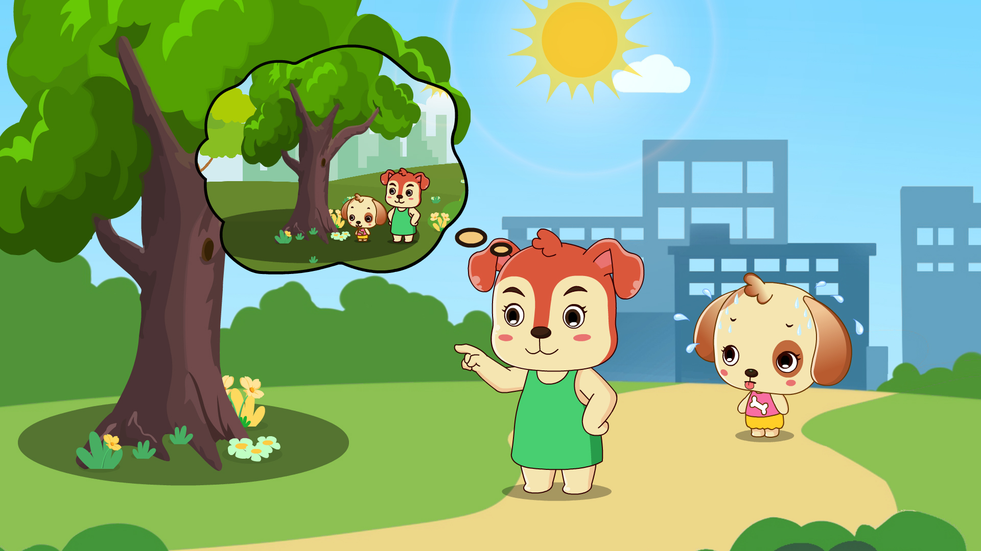 “那我们去树下歇歇脚吧!”妈妈指着前方的大树说道。
