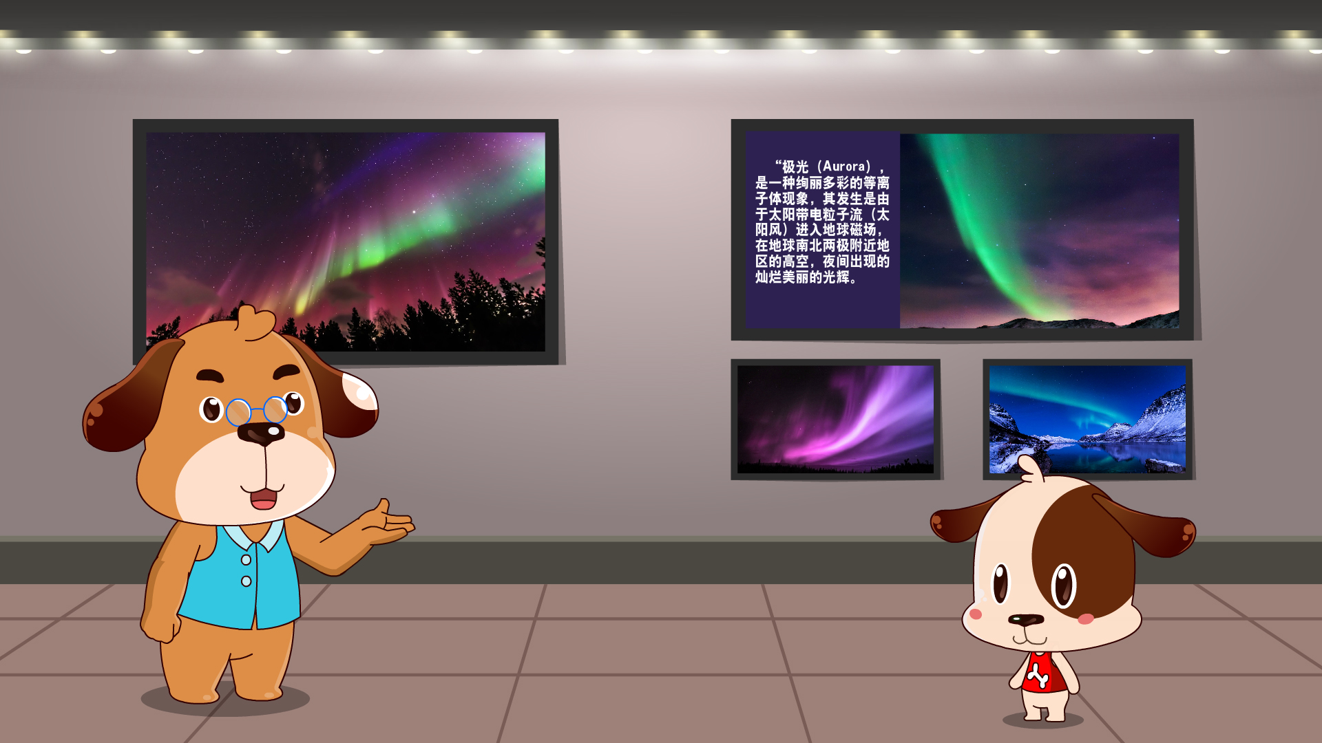 “我想起来了,好像之前学校组织科普活动时介绍过。”开开兴奋地说,“极光是原子与分子在地球大气层最上层运作激发的光学现象。”