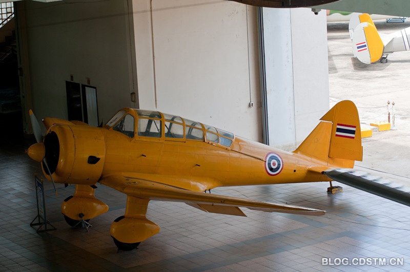 霍克75N对于大多数人可能比较陌生,该型是柯蒂斯P-36针对泰国的外销型,1937年向泰国交付了12架,曾参与泰法战争。该机堪称泰国空军获得的第一种现代意义的单翼战斗机。因为都是柯蒂斯出品,霍克75N和P-40“战斧”的机翼和中后机身几乎完全相同,但霍克75N的机首更短。P-36系列的发动机未装备增压装置,高空表现较差,但在低空的加速、盘旋性能还是非常出色。霍克75N专为出口泰国做了简化,起落架改为固定式加整流罩,显得臃肿笨拙。该机内部设备保养较完好,博物馆的工作人员表示只要有补充合适配件,这架飞机就有希望恢复到飞行状态。二号展厅还陈列有一架费尔柴尔德24J,泰国在1938年获得3架该型机,用于联络。