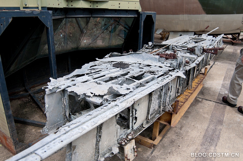 露天展区还有一个“垃圾堆“,摆放着很多残骸,可以发现阿莱尼亚G.222残骸、带有中文字样的F-5前段机身、未开封的发动机运输包装箱、各种电子设备等许多有趣的物品。
