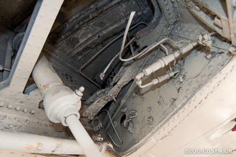 图14-02 有明显燃烧痕迹的A-1J左侧主起落架舱