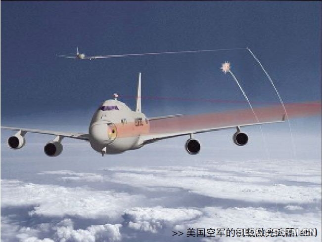 战区防御机载激光武器 主要用于从远达600千米距离上对战区弹道导弹进行助推段拦截,从而使携带核、生化弹头的碎片落在敌方区域,迫使攻击者放弃自己的行动,起到有效的遏制作用。