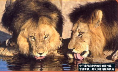 位于南部非洲的喀拉哈里沙漠水源奇缺,并且水源地相距很远