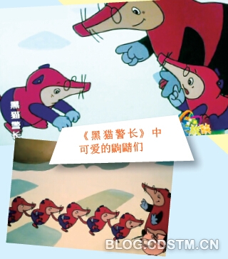 《黑猫警长》里的河马是个窝囊的角色,夜里和大象、犀牛一起偷吃村民们辛苦盖好的红土围墙,而被黑猫警长追得连衣裤都掉了,哭哭啼啼地投降。