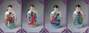 内画, 顾名思义, 内里作画。在料器内壁绘画,还是清代嘉庆年间的事情。因其技法精湛,初识者难以琢磨,因而又得名“鬼画壶”。鬼,是鬼斧神工的“鬼”,技法之精妙绝伦堪称匪夷所思;鬼,也是神出鬼没的“鬼”,外人只见勾笔搁在壶内, 一动不动, 谁知笔尖自有动静, 无声无息中画面已显, 它一经问世, 便成为富贵闲人的“掌中宝”,因其技艺匠心独运而以高雅封名。但自古至今,作为成品的内画瓶壶便是供有相当财力者把玩收藏的至宝家珍,从这个角度来讲,多少又带些“俗”气。因此,雅俗共赏便成了如今内画工艺作品新的审美标准。