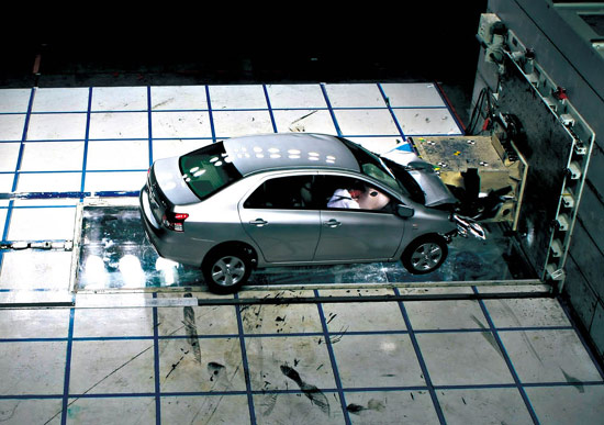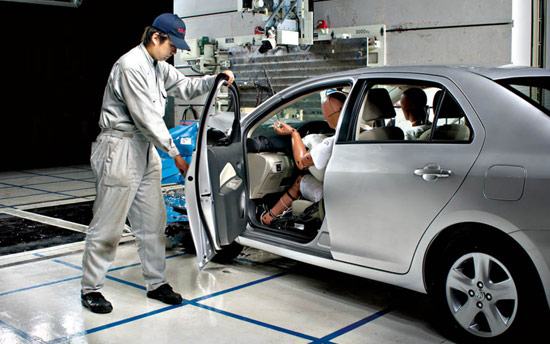 据丰田的技术专家介绍,丰田会对全球各地的交通事故进行调研,通过分析这些事故情况,模拟和再现这些事故,从而在今后的研发中改进车辆的安全性能。这也是丰田所推崇的”现地现物”的原则在安全研发领域的应用,用我们熟悉的话就是“实事求是”。据东富士研究所的工作人员介绍,东富士研究所的碰撞实验室是全球最大的室内全天候碰撞试验室之一,每年会在这里进行1500辆车的各类碰撞,进行如此大量的碰撞实验,目的就是要让丰田的技术人员能够通过各种方式再现事故现场,做到走近事故,从而确保研发出来的车辆能够远离事故。