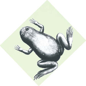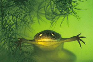 1802年,法国博物学家杜丁第一次描述了这一物种,他当时依据的是巴黎自然历史博物馆保存的一件标本。为了纪念他,非洲爪蟾的种名后常常标上他的名字。随后人们才对它的解剖学与分类学进行了进一步的研究。这一时期研究非洲爪蟾的主要是英国伦敦的博物馆和动物园的研究人员,研究所用的标本也都是从非洲进口的。到20世纪30年代以后,欧洲和北美的一些实验室开始自己养殖非洲爪蟾,这是为什么呢?原来,在这一时期,非洲爪蟾被广泛用于医院的早期妊娠诊断,人们对非洲爪蟾的需求大大增加了。这主要归功于英国生物学家霍格本教授。