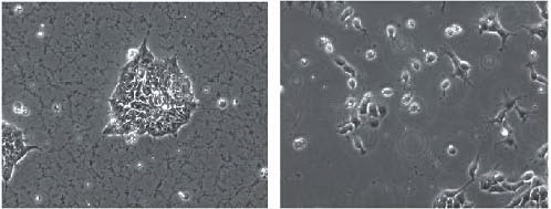 研究小组鉴别出一个特殊的信号路径,它对细胞集落形成和hESC间物理相互作用起重要作用。当该信号路径被名为Y27632的物质阻断后, hESC正常的集落形成被大大削弱,但仍然保持着多能性。除此之外,研究人员还广泛筛选了可与Y27632结合的多种支架材料,结果发现,原来常用的从小鼠肿瘤细胞提取的凝胶涂层可以被另一种物质poly-D-lysine取代。后者的主要优点是非动物的,容易操控而且质量稳定,而培养得到的hESC的多能性几乎没有差别。