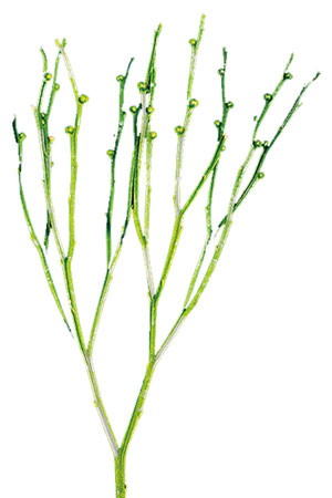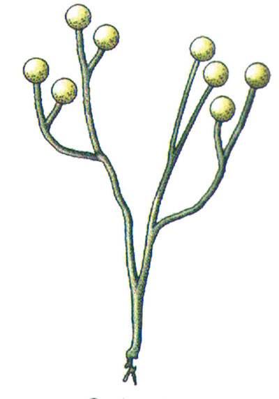 另外,还有一类孢子囊聚集成丛状,着生于茎轴末端的植物,它们与工蕨类和石松类保存在相同时期的地层中,在演化上具有重要意义,因为它们可能代表了种子植物的先驱。这种植物中不具叶的代表就是所谓的三枝蕨类植物,而具有叶的植物则为典型的早期真蕨类植物或古羊齿类植物。