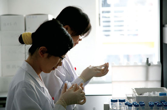 基因组技术平台实验人员正在进行用于高通量测序的前的DNA文库制备