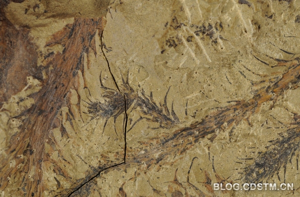 另外,新疆莱氏蕨的生殖器官——孢子囊位于叶的腹面上,其末端具有钩状结构的叶可能会更加易于附着在其他植物或动物体上,如果孢子囊随着叶子脱落,势必有利于植物的散播,这当然是植物体为了繁衍后代而可能采用的一种生殖策略。然而,从对新疆莱氏蕨植物化石的研究来看,新疆莱氏蕨植物的叶片并不容易脱落,这种猜测似乎难以获得证据支持。