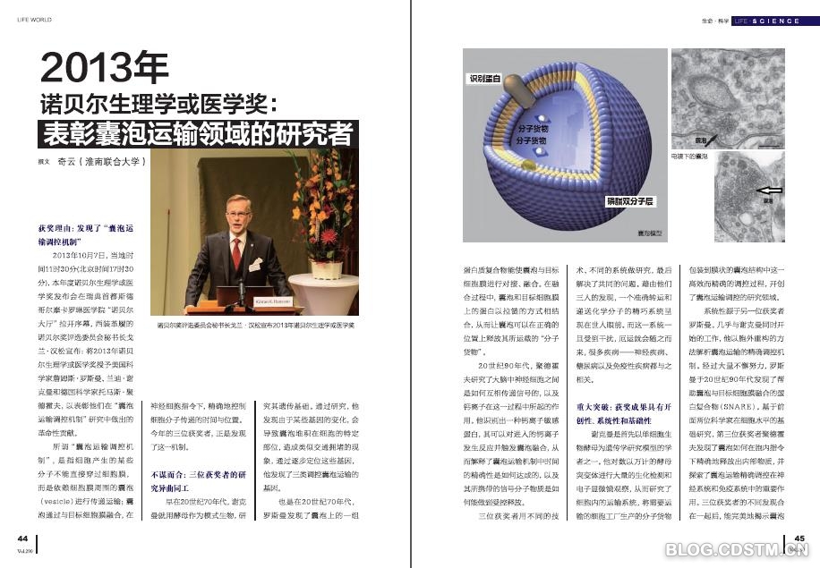 2013年诺贝尔生理学或医学奖:表彰囊泡运输领域的研究者