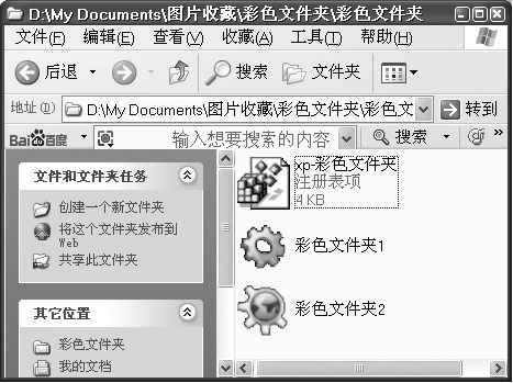 第一步:解压“彩色文件夹.rar”(下载地址:attachments/kpqk/download.it.com.cn/SoftWeb/software/system/syscomain/20053/9750.html)压缩包后,依次运行“XP-彩色文件夹”、“彩色文件夹1”或“彩色文件夹2”(如图6)。