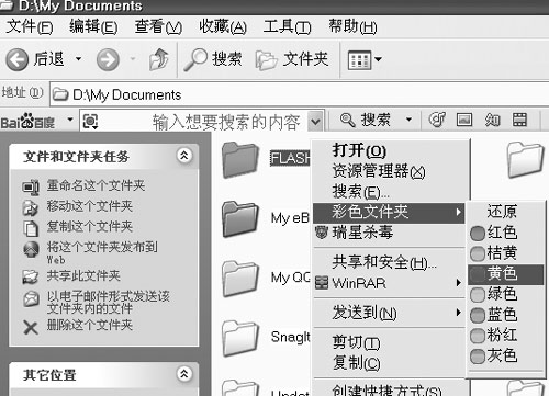 添加完后保存文件,打开“D:My Documents”文件夹,按下“F5”键(刷新),该文件夹中的子文件夹名会变成对应的颜色(如图3)。