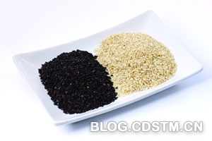 取一粒黑芝麻,用手指掐去尖端,也就是黑芝麻发芽(即胚芽)的地方,天然黑芝麻有块针尖大小的白色(或黄色),染色芝麻则绝对没有这一“点”。