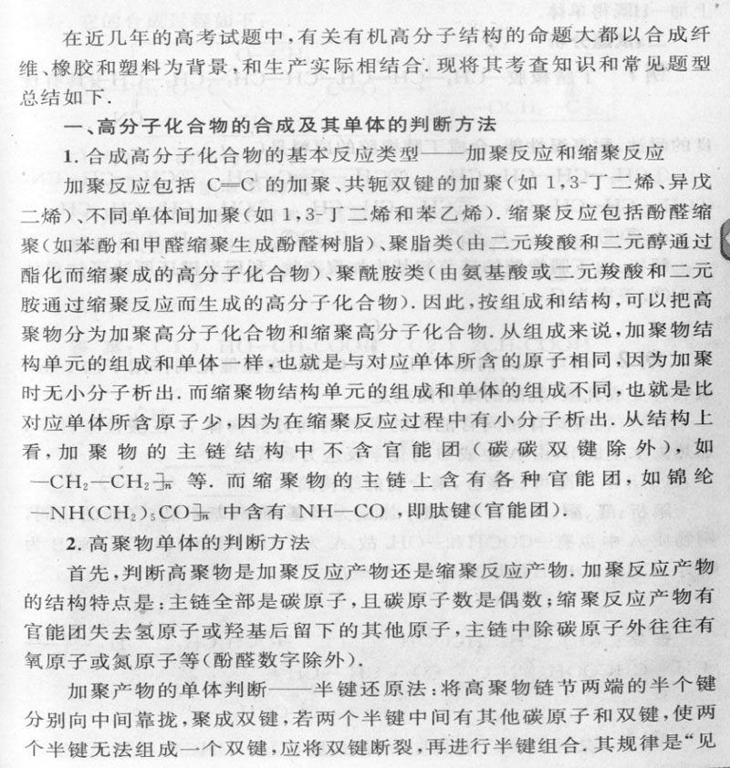 探析有机高分子化合物结构高考考点