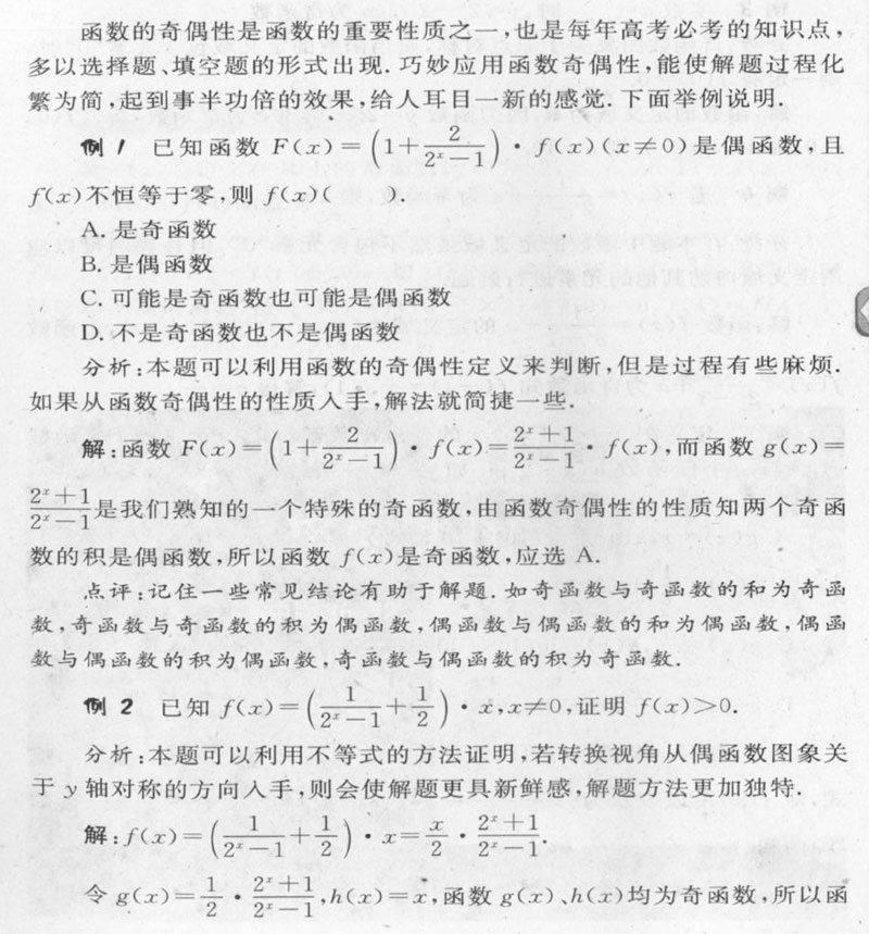 巧用函数的奇偶性解题举例