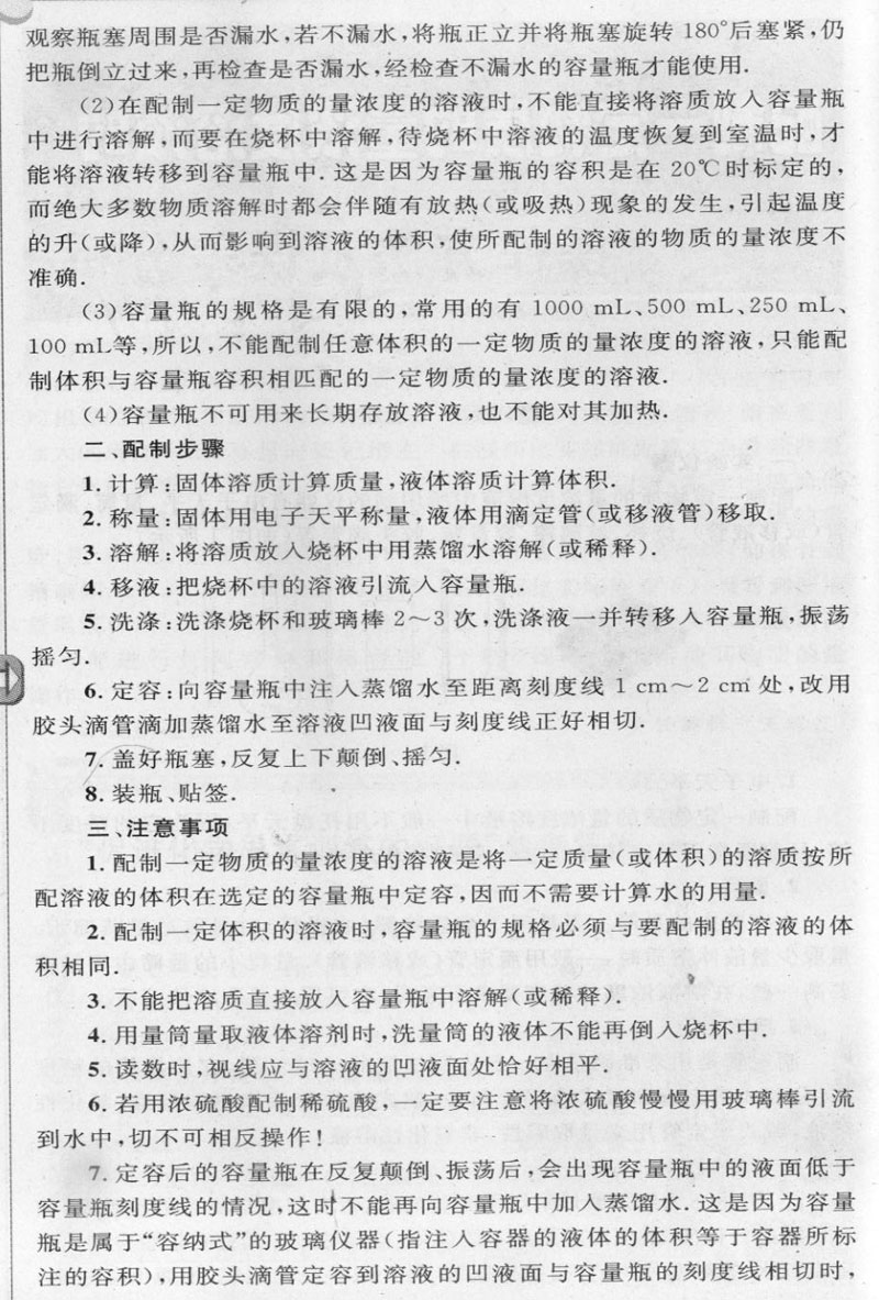 配制一定物质的量浓度溶液的操作方法及误差分析