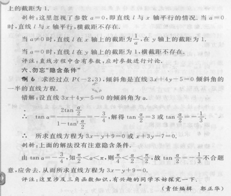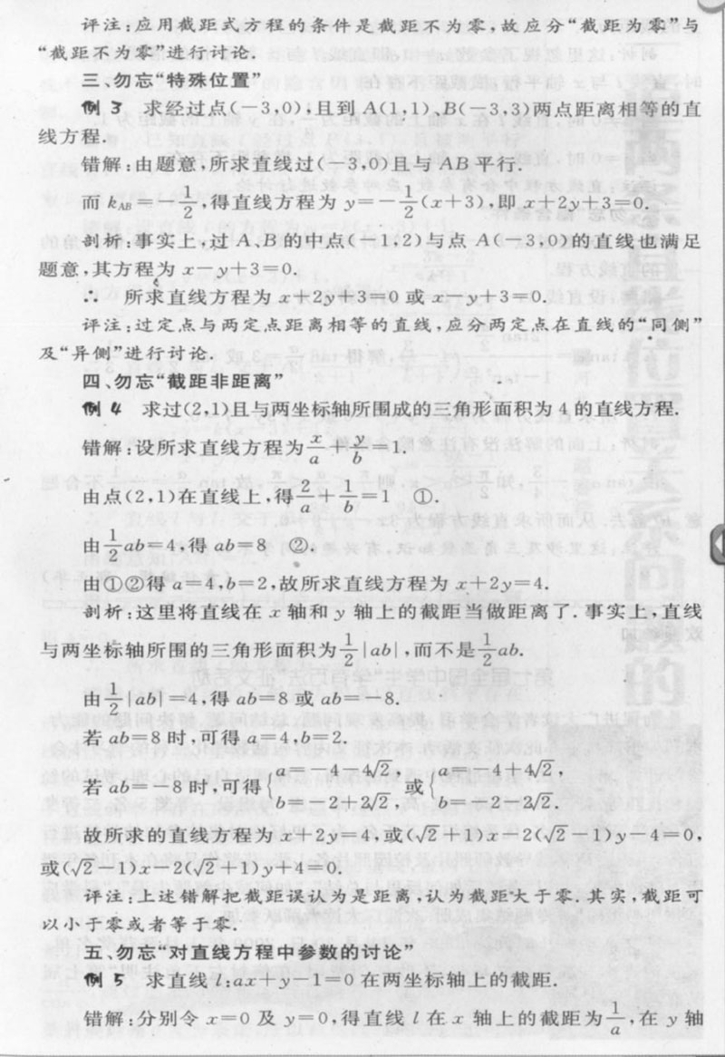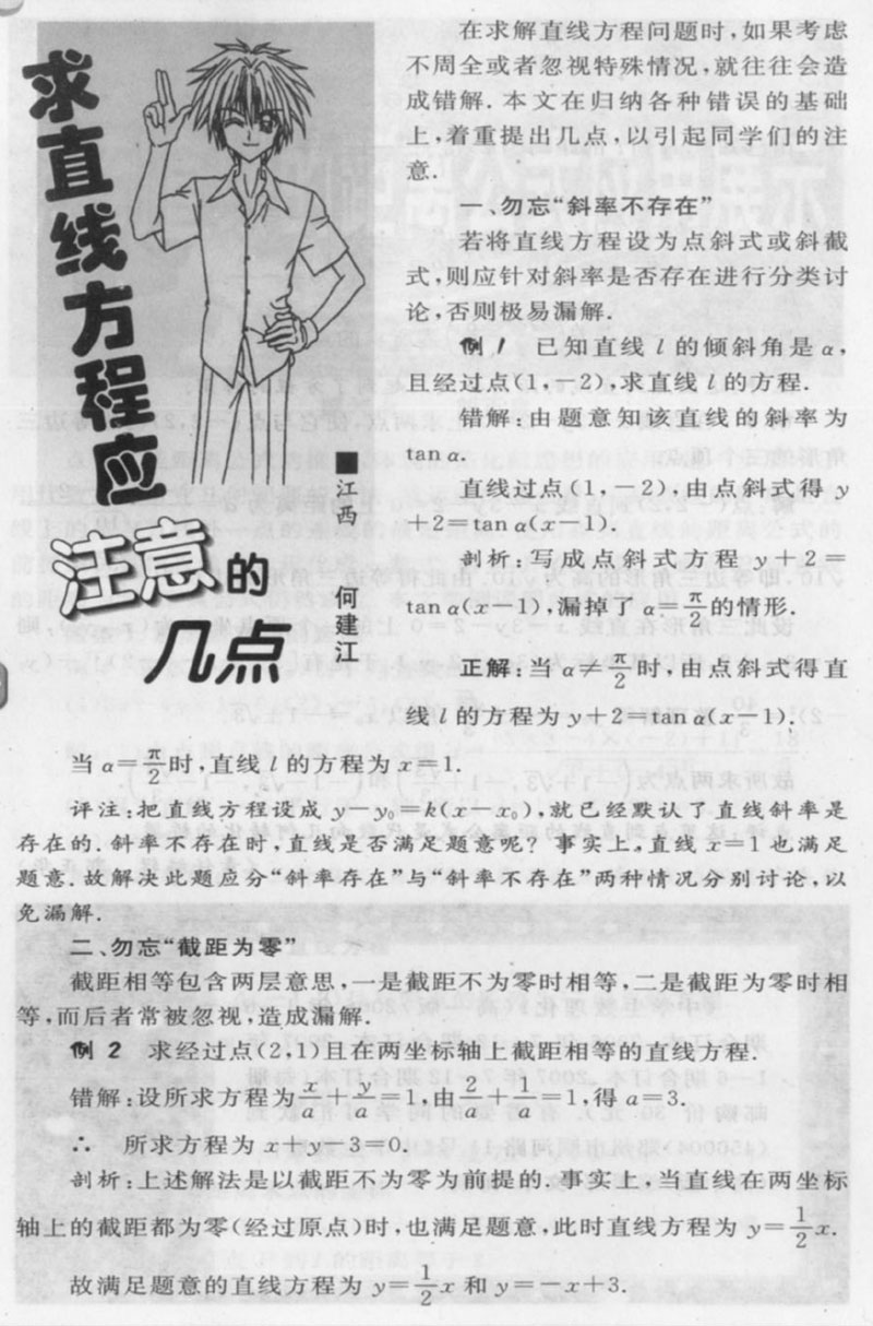 求直线方程应注意的几点