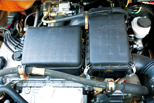 微型车的节油本领不言而喻,路宝节油π更是在这方面狠下苦功,东安发动机厂生产的1.1 L和1.3 L K系列发动机,是路宝节油π的动力来源和节油贡献者。1.1 L发动机的最大功率为53 kW,最大扭矩90 N•m,实际驾驶中,感觉这台发动机并不沉闷,推动900 kg的车身质量虽然谈不上强劲,但已是相当欢快了。发动机噪声的高亢在意料之中,略显杂乱的声音让我知道这是一款需要安静驾驶的小宝贝,可惜我是个“运动狂”,所以小宝贝的处境可想而知,发动机3 000 r/min以上换挡尽管很不经济,但却能让我超越一些“打盹”的“大排量”。即使这种驾驶习惯,我们测得的油耗也不过4.8 L/100 km,而根据厂家提供的数据,1.1 L发动机等速油耗仅为3.8 L/100 km。