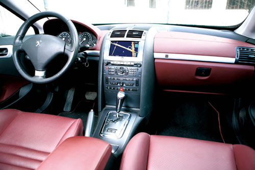 打开407Coupe厚重的车门,似曾相识的内饰马上“跳”进眼帘。同样的变速器换挡杆、同样的三辐式运动方向盘、同样的攻击性风格,不过我还是感觉哪里有所不同,仔细观察下,才发现除了新增的GPS功能显示屏外,座椅内饰板的颜色也进化了。原本偏橙色的内饰颜色改为绛紫色,攻击性明显加强,车内跳动的感觉也降低了,稳重感油然而生。仪表盘同样为5环式,只是指针的样式发生了变化,复杂的中控台似乎不应出现在轿跑车上,别再吹毛求疵了,“鲨鱼”和“狮子”可都不是用来观赏静态的——迅速让407Coupe游弋起来、奔跑起来才是当务之急。