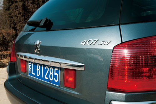 407SW的前脸与4门版的三厢车型几乎如出一辙,视觉的集中点还是那个一体式的进气格栅,侧面的亮点则是头顶的行李架。精彩的部分其实在于尾部,尾灯的长相似曾相识,是时下都市紧凑型SUV中普遍采用的样式,事实上,这个尾部不是简单地把三厢车的阶梯式后背填平,而是经过全新的造型设计,C柱的造型独特,外凸的后保险杠则丰满而不乏动感。整体而观,407SW的尾部不仅比例更协调,还实实在在地增加了行李存储空间,455 L的行李厢空间也是407车系中的冠军。同样作为旅行车,407SW与307SW相比,在座椅的空间变换方式上可少了不少,这点让我多少有些遗憾。不过,407SW的后排座椅还是可以4/6折叠,更可完全放倒,并与行李厢地板平齐,成为一个更为宽敞的空间,方便运输一些超长的物品。此外,前排副驾驶的座椅可以向前完全放平,尽管靠背背面没有设计成为小桌板,但也增加了车内座椅的变换方式。而后排不仅安排了空调出风口,地板上的隆起更是微乎其微,这显然提升了后排乘员的腿部舒适程度。