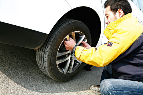 1.养成每个月检查轮胎磨损情况的好习惯,一旦发现轮胎偏磨严重,应及时对轮胎进行换位。轮胎换位时,一定要参照汽车生产厂商随车配备的《产品使用手册》给出的相关提示和轮胎安装说明进行操作。