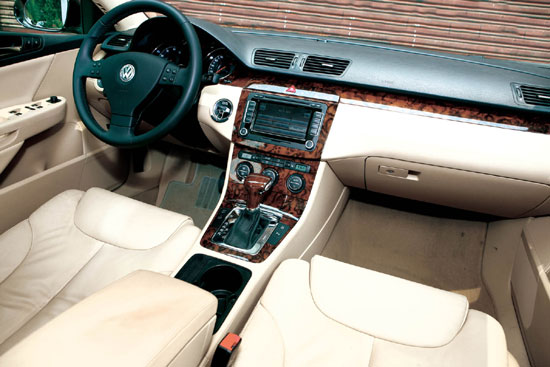 一汽-大众在迈腾2.0TSI的配置方面也有所增加,带清洗功能的随动转向复式氙气前大灯成为2.0TSI的标准配置,灯光满溢神采、锐利灵动之间更增强了夜间行车的安全性;而蓝牙车载电话准备系统和含DVD功能的卫星导航系统的应用更平添了迈腾方便舒适的科技感。新增的配置中显然以DVD导航系统最惹眼,这套系统存储了多达700条语音字库目录,可实现真正的“人机对话”,其配备的电子罗盘也是较为实用的功能。当然,这个6.5英寸的触摸屏并未配备如今中级车常见的倒车可视系统,这不能不说是个遗憾,好在车身前后全方位驻车雷达多少弥补了苛刻车主的要求。