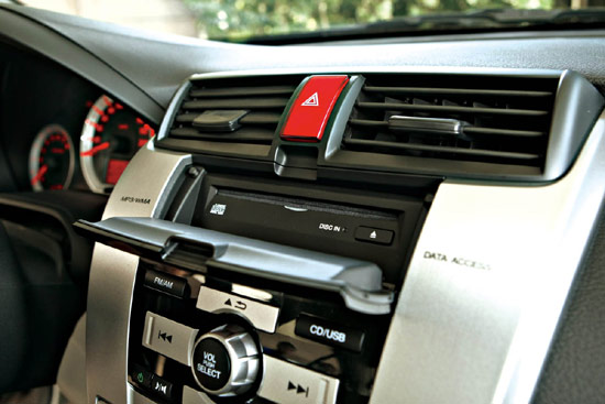 同新飞度一样,相比上一代车型,新CITY锋范的方向盘转向力度有所加强,好处是驾驶者再也不会为自己的两个前轮无从感知而抱怨。方向盘在高速时的转向虚位更小,行驶稳定性更突出。不过,方向盘力度变得厚重了,但尺寸却没有改变,这让我感觉略有不适,要知道,纤细的方向盘可是对弯道上辗转腾挪无益的。