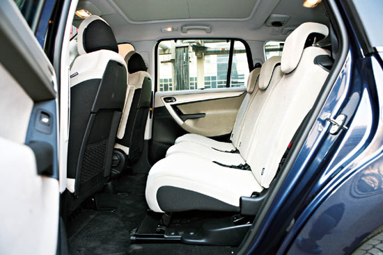 毫无疑问,大C4毕加索最吸引人的就是其“VISIOSPACE”全景空间的设计理念,在这种理念的指导下,6.4m2的整车车窗面积令大C4毕加索瞬间成为移动中的水族馆。事实上,全景天窗不仅仅是为第一排乘员准备,后两排乘客的享用更具现实意义,因此,MPV车型才是全景天窗最具价值的所在。大C4毕加索A柱的设计也别出心裁,中间三角窗的面积是目前市面上最慷慨的,由此带来了更为奢侈的车内采光。除了良好的采光,车内的空间也是大C4毕加索的优势,2728mm的长轴距保证了车内3排乘员的空间。
