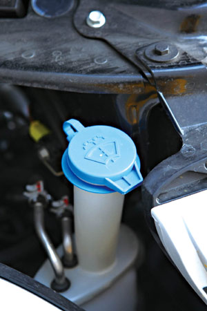随着雨刮片一起更换的还有冬季玻璃水。冬季夜间的气温会降到零度,如果玻璃水储罐里灌的是自来水,那结冰后就会把水罐冻裂。其实冬季玻璃水自己也能配制,只需在清水中加入适当比例的酒精,再配合洗涤灵一起使用,既有抗冻的作用也有清洗的功能。