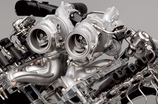 为了降低纵向长度,宝马把V8发动机的双涡轮安装在了V型汽缸夹角中间
