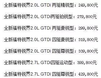 4月18日,长安福特正式公布旗下首款中大型SUV——全新福特锐界的厂商建议零售价。全新福特锐界提供包含5座、7座版在内的7款车型供消费者选择,各车型具体售价如下:
