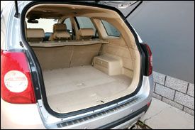 相对于科帕奇略显奔放的空间布置,狮跑的绝对强项在于空间利用的精巧程度和一些独具匠心的特别设计。虽然整体尺寸上要比对手稍显劣势,但在乘坐的舒适性和实用的便利性方面也是相当不错的。狮跑的轴距仅为2 630 mm,与很多同级别竞争对手相比确实不占优势,但是经过独特的空间设计,您在任何一个座位上都不会因为腿部空间不足而感到局促。该车的第二排座椅除了可以像科帕奇那样6∶4向前放平之外,还可以向后倾斜一定角度,从而为后排乘客提供了更为理想的乘坐舒适感。