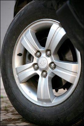科帕奇(左)的轮胎尺寸相当不凡;狮跑(右)车轮尺寸较小,但抓地力也相当不错