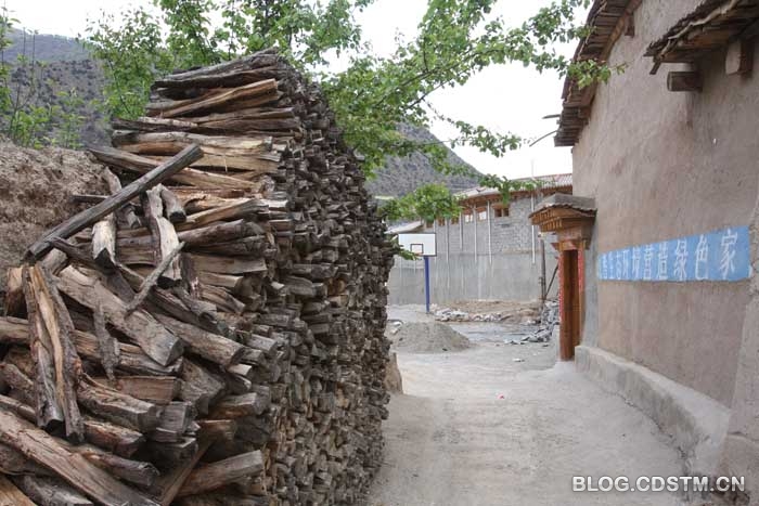 在房前屋后,发现很多成堆的木材,有人介绍说,这里的人还以木材为燃料,所以有很多树木就烧掉了。听了觉得很可惜,在这里树木生长很困难的地方,宝贵的森林资源却如此被糟蹋。